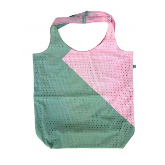 Lightweight reusable bag made from up-cycled exhibition display banners.